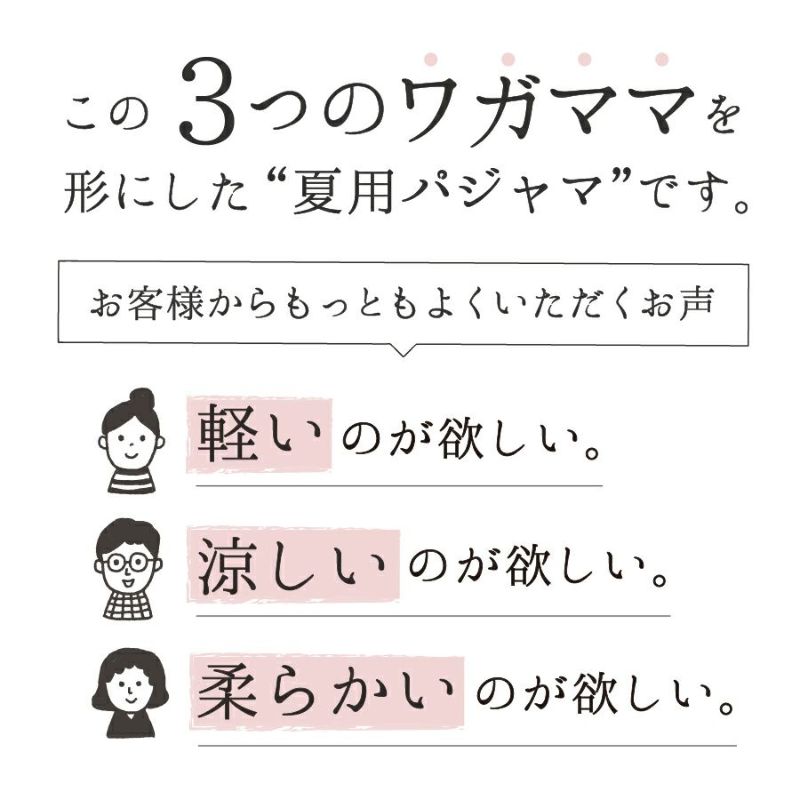 軽い!涼しい!柔らかい!3つのわがままを叶えた春夏ガーゼパジャマ。 日本伝統の和さらし製法で、繊維が潰れないようにじっくり仕上げたパジャマは、ふっくら柔らかな肌当たりです。 【商品詳細】 カラー:ピンク、セピア、ダークブルー 素材:綿100% 日本製(企画から製造工程全て日本で行っています。) 洗濯可(洗濯ネット使用) ※乾燥機のご使用はお避けください。 ※天然素材の性質上、洗濯後に多少の縮みがあります。