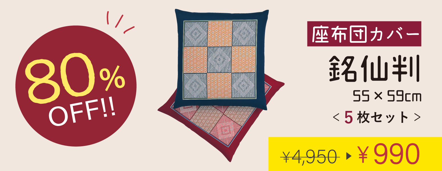 他の画像を見る 居酒屋さんやお料理やさんなどの業務用、法事や、普段使いでもご利用いただけます。 【20%OFF】【五枚組】座布団カバー 小夜花 銘仙判 55×59cm 定価 ¥ 4,950 のところ 販売価格 ¥ 3,960 税込 販売期間 2026/03/06 12:00 〜 2026/03/11 23:59 在庫切れ 詳細を見る お気に入りに登録する
