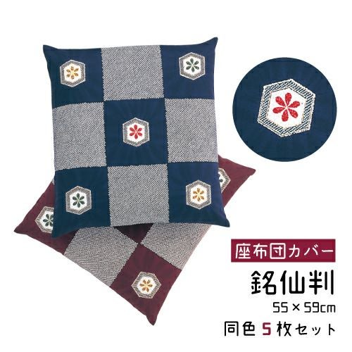 【商品詳細】 ●商品名:座布団カバー 蛍雪 5枚組 ●サイズ:55×59cm(銘仙判) ●カラー:紺・エンジ ●素材:綿100% ●生産国:日本製(企画から製造工程全て日本で行っています。) その他 ・濃色は多少色落ちすることがありますので、他の物とのお洗濯はお避け下さい。 ・長時間の水への浸漬はお避け下さい。 ・乾燥機によるタンブル乾燥はお避け下さい。