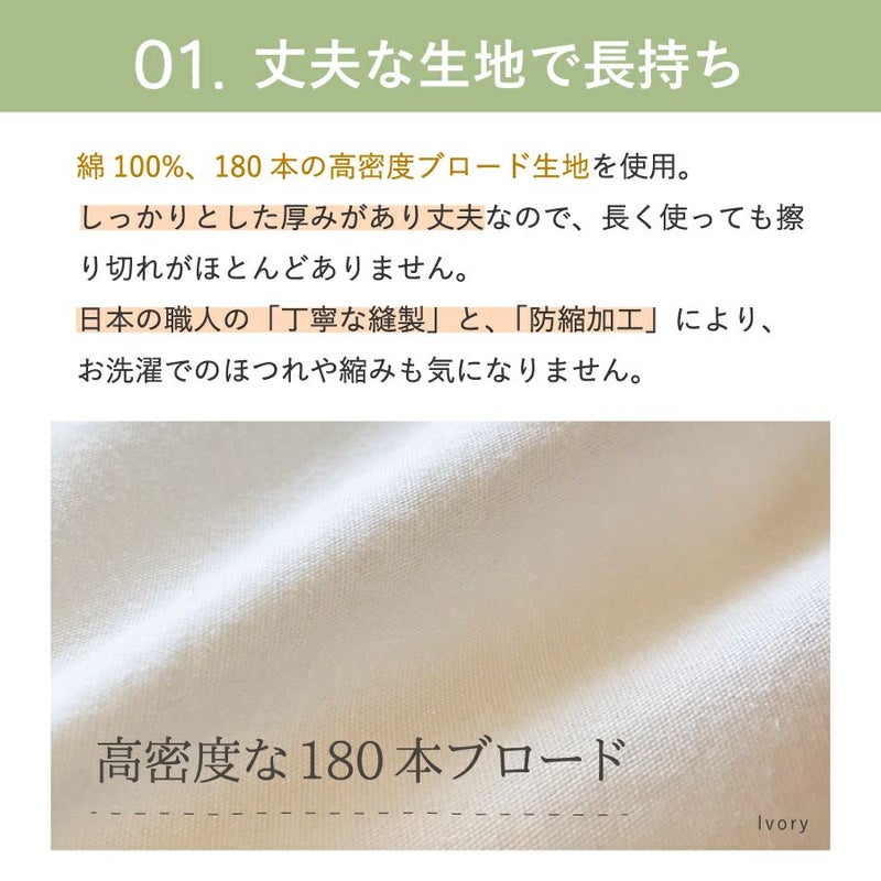 ・選べるカラフルな10色。 ・素材はお肌に優しい綿100%。 【商品詳細】 素材:綿100% 生産国:日本 色:全10色 ■掛布団カバー■ サイズ:ダブル 190×210cm 仕様:8か所ヒモ付き、全開ファスナー ■敷布団カバー サイズ:ダブル 145×215cm 仕様:全開ファスナー ■枕カバー■ サイズ:43×63cm 仕様:ファスナーレス ※画像の色合いについてはモニターの種類や設定により、多少異りますのでご了承下さい。
