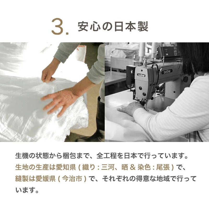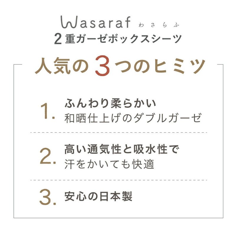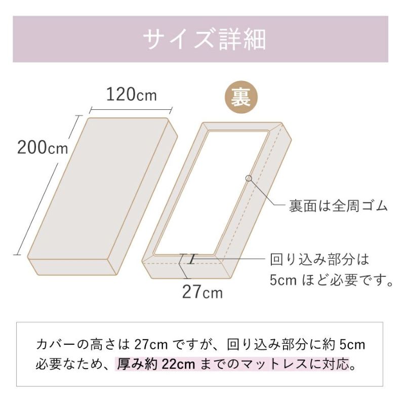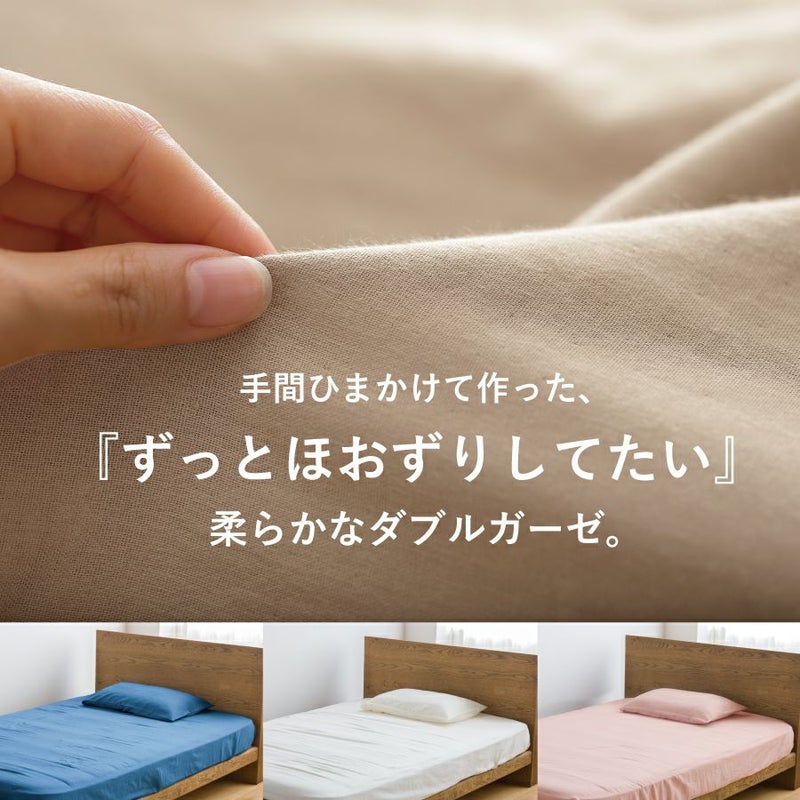 【商品詳細】 サイズ:200cm×120cm×27cm(セミダブル) 素材:綿100%、国産ダブルガーゼ(和晒加工) 仕様:裏面ゴム付き 色:ミルキーホワイト、ベビーピンク、ラベンダー、アクアブルー、ストーングレー、スチールブルー、ブラウン 生産:日本製