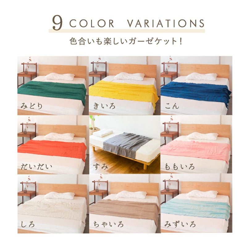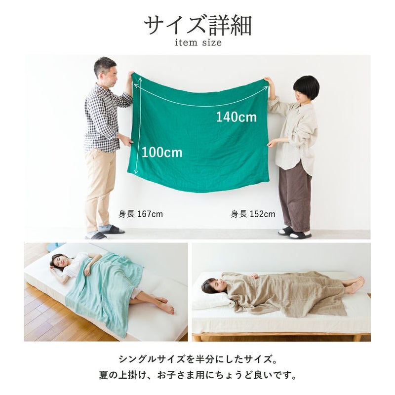 空気につつまれる感覚。和さらし加工を施したガーゼで、ふわふわの仕上がり。 洗うたび生地のボリュームがアップし使い込むほどくたっと感が出ていろんなガーゼの表情が楽しめます カラーは全9色。寝具としてだけでなくはおりやひざ掛けなど用途いろいろ。 どこでも気兼ねなく使えます。 【商品詳細】 素材:綿100% サイズ:140×100cm 日本製 洗濯可(洗濯ネット仕様) ※乾燥機のご使用はお避けください。 ※天然素材の性質上、洗濯後に多少の縮みがあります。