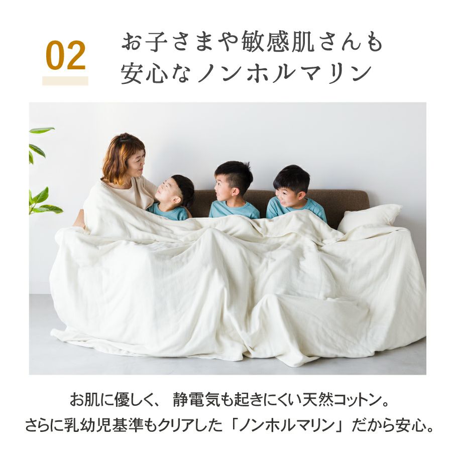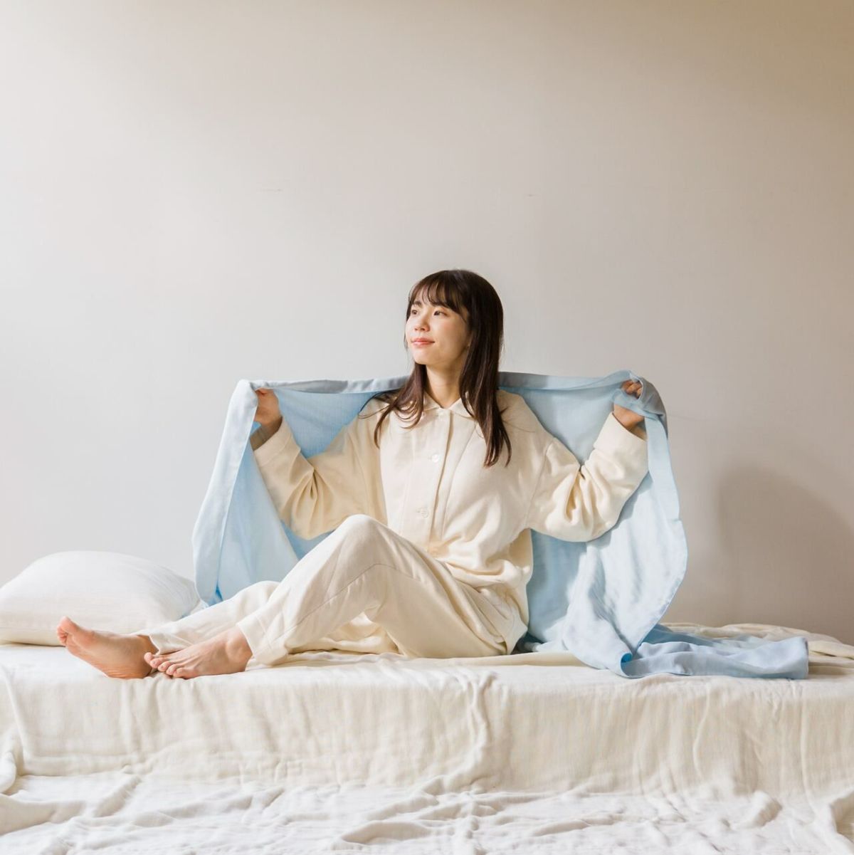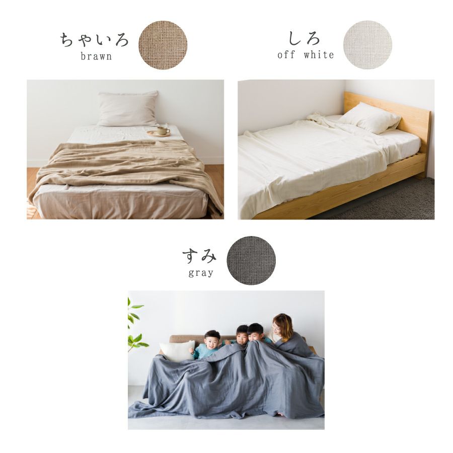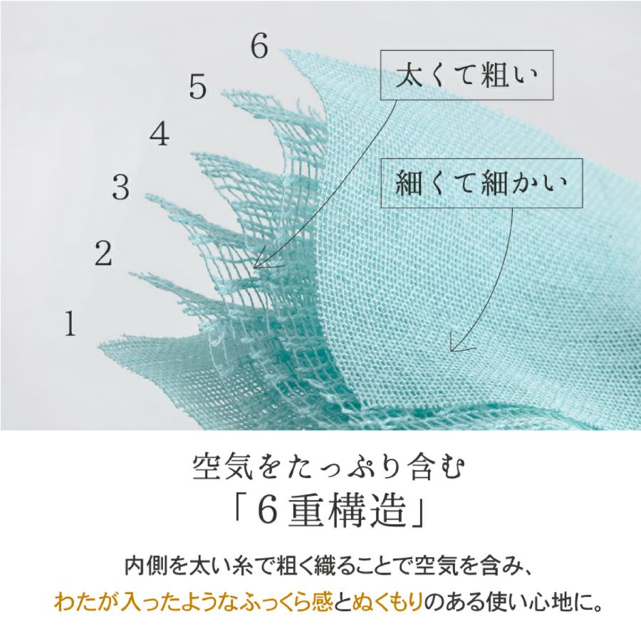 当店のガーゼケットでまず試していただきたい定番が、6重ガーゼケット。その他にも春夏向きの4重、秋冬向きの8重、4重と6重の中間の5重があります。