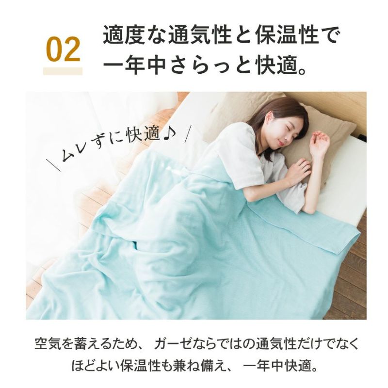 空気につつまれる感覚。和さらし加工を施したガーゼで、ふわふわの仕上がり。 洗うたび生地のボリュームがアップし使い込むほどくたっと感が出ていろんなガーゼの表情が楽しめます カラーは全9色。寝具としてだけでなくはおりやひざ掛けなど用途いろいろ。 どこでも気兼ねなく使えます。 【商品詳細】 素材:綿100% サイズ:140×100cm 日本製 洗濯可(洗濯ネット仕様) ※乾燥機のご使用はお避けください。 ※天然素材の性質上、洗濯後に多少の縮みがあります。