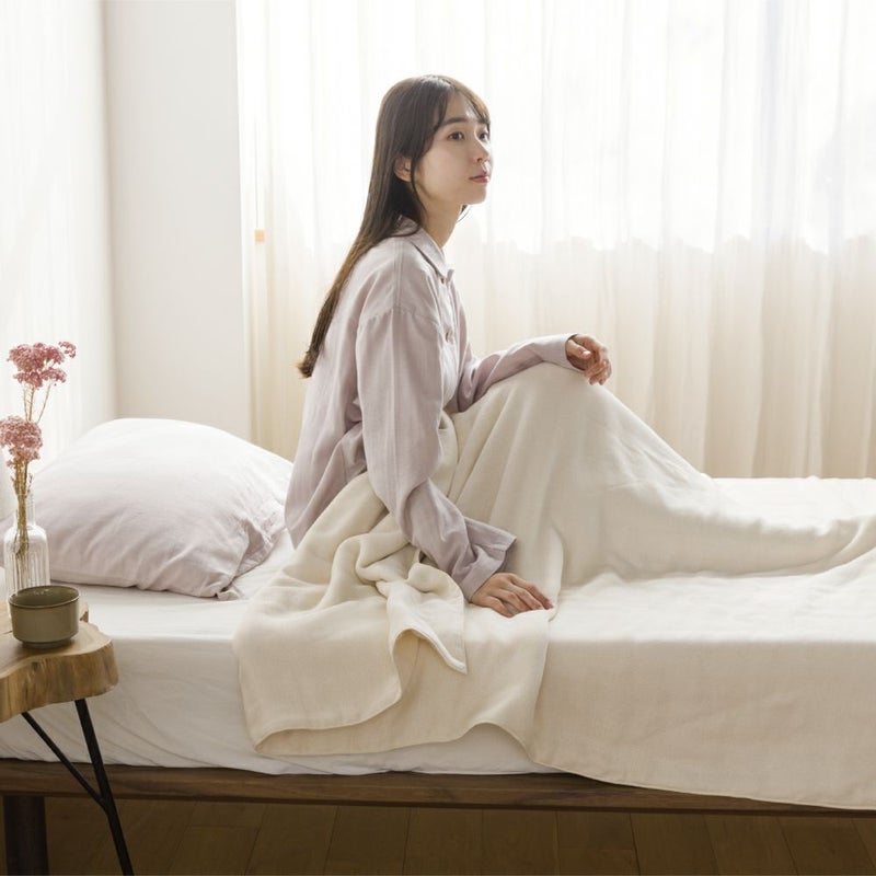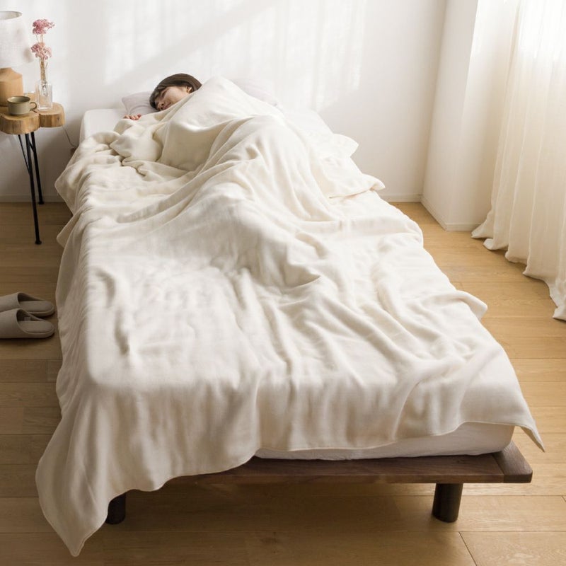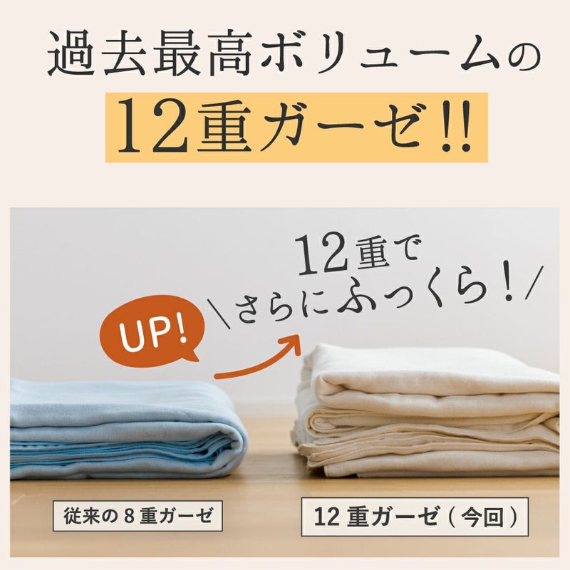 より無垢・よりふっくらな「湯洗いガーゼ」。 染色と晒しの工程を省くことで、生地本来の柔らかさが活かされた 優しい生成りの12重ガーゼ毛布です。 【商品詳細】 サイズ:220×140cm(シングルロング) カラー:きなり 素材:綿100% 原産国:日本製
