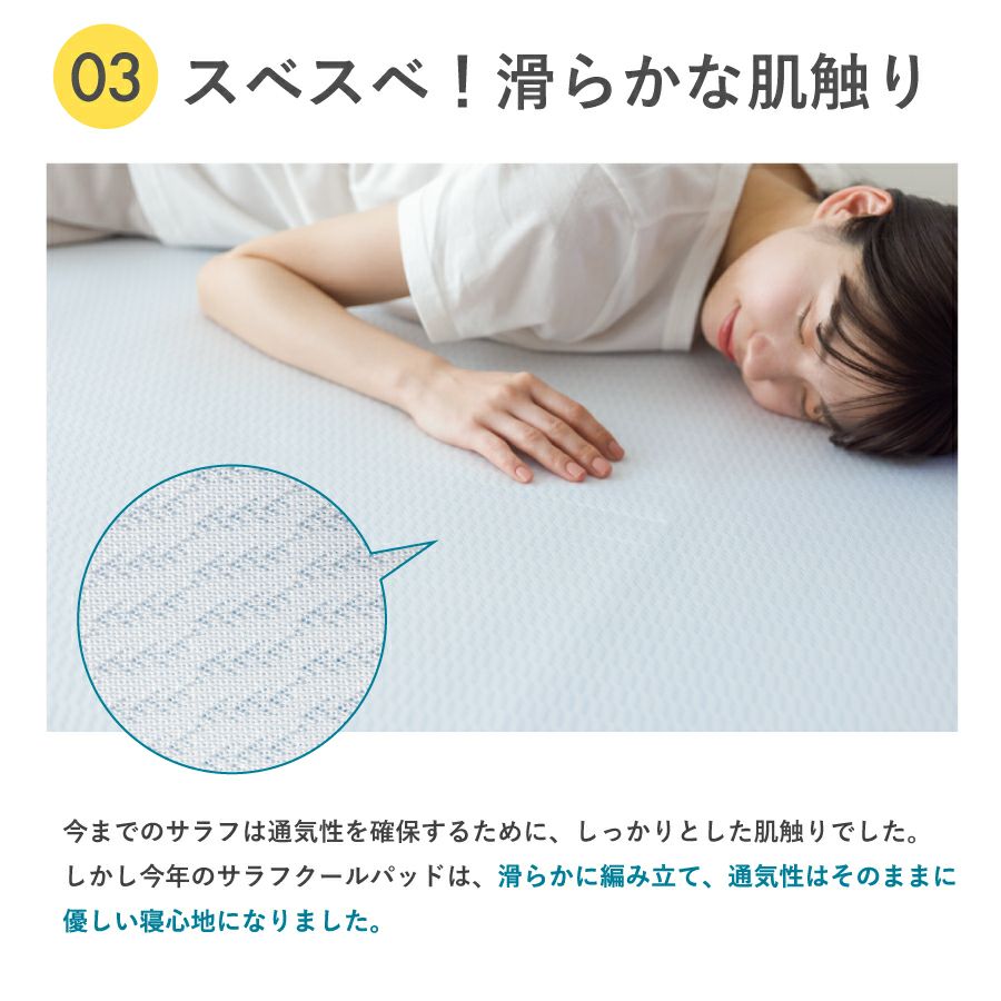 他の画像を見る 冷感&通気性のクールタイプ。夏の夜を快適にする定番敷パッド! 【クールタイプ】サラフ クールパッド シングル 100×205cm 30日間お試し対象商品 販売価格 ¥ 16,500 税込 詳細を見る お気に入りに登録する