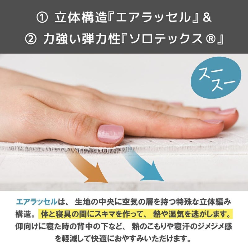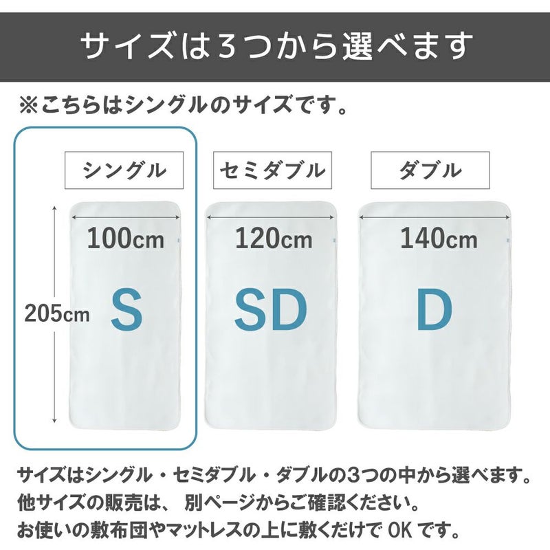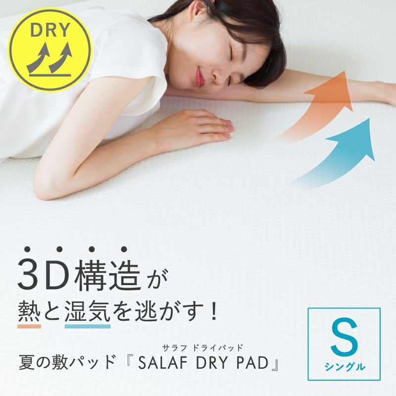 吸水性にすぐれたドライタイプの敷きパッド。 お使いのベッドやふとんに取付けるだけで、熱やムレを放出し、寝汗もサッと吸収されるので快適に眠ることができます。 【商品詳細】 素材:ポリエステル100% サイズ:100×205cm カラー:ホワイト/ベージュ/グレー 日本製 洗濯可(洗濯ネット使用) ※乾燥機のご使用はお避けください。