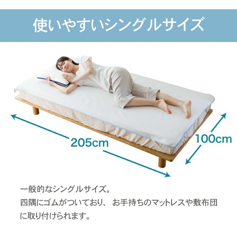 【商品詳細】 商品名:サラフ クールダンボールパッド サイズ:シングルサイズ(100×205cm) 組成:ポリエステル58%、ポリエチレン42% 仕様:四隅ゴムバンド付