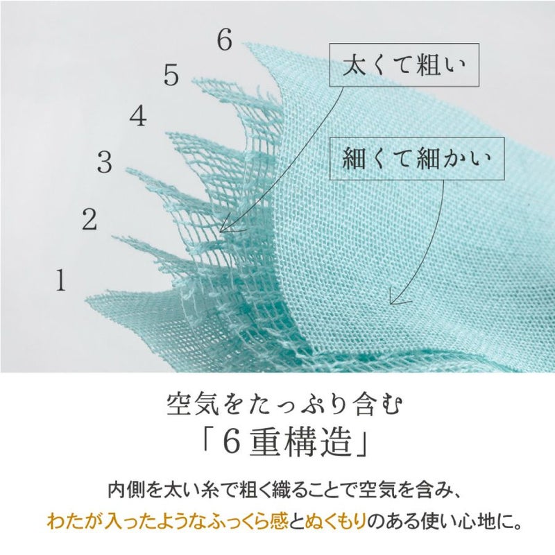 外側2枚は「細い糸で密に」、内側4枚は「太い糸で粗く」織ることでガーゼの内側に空気を閉じ込め、