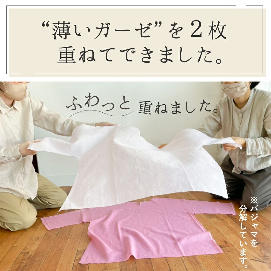 薄いガーゼを2枚重ねただけのシンプルな作りのパジャマ。