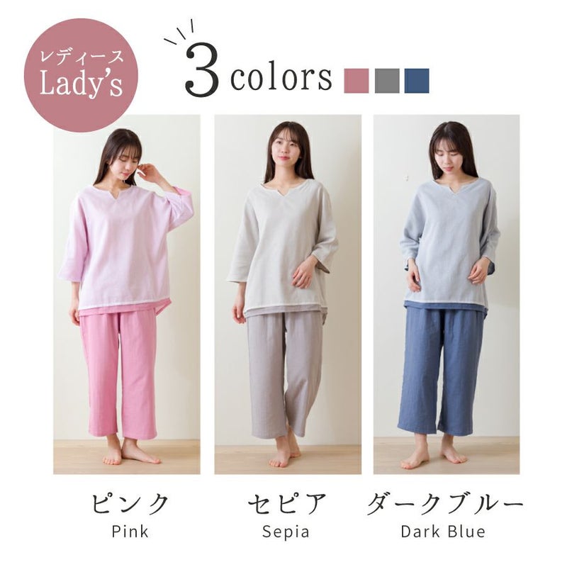 軽い!涼しい!柔らかい!3つのわがままを叶えた春夏ガーゼパジャマ。 日本伝統の和さらし製法で、繊維が潰れないようにじっくり仕上げたパジャマは、ふっくら柔らかな肌当たりです。 【商品詳細】 カラー:ピンク、セピア、ダークブルー 素材:綿100% 日本製(企画から製造工程全て日本で行っています。) 洗濯可(洗濯ネット使用) ※乾燥機のご使用はお避けください。 ※天然素材の性質上、洗濯後に多少の縮みがあります。