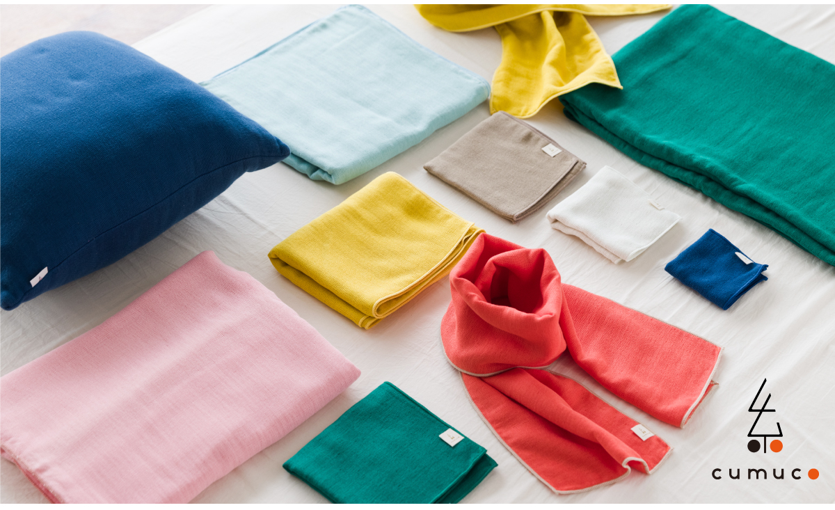 愛知県三河地方の伝統的な製法で作られる、ふっくらと柔らかくて色とりどりのクムコガーゼが、ギフトボックスになりました。