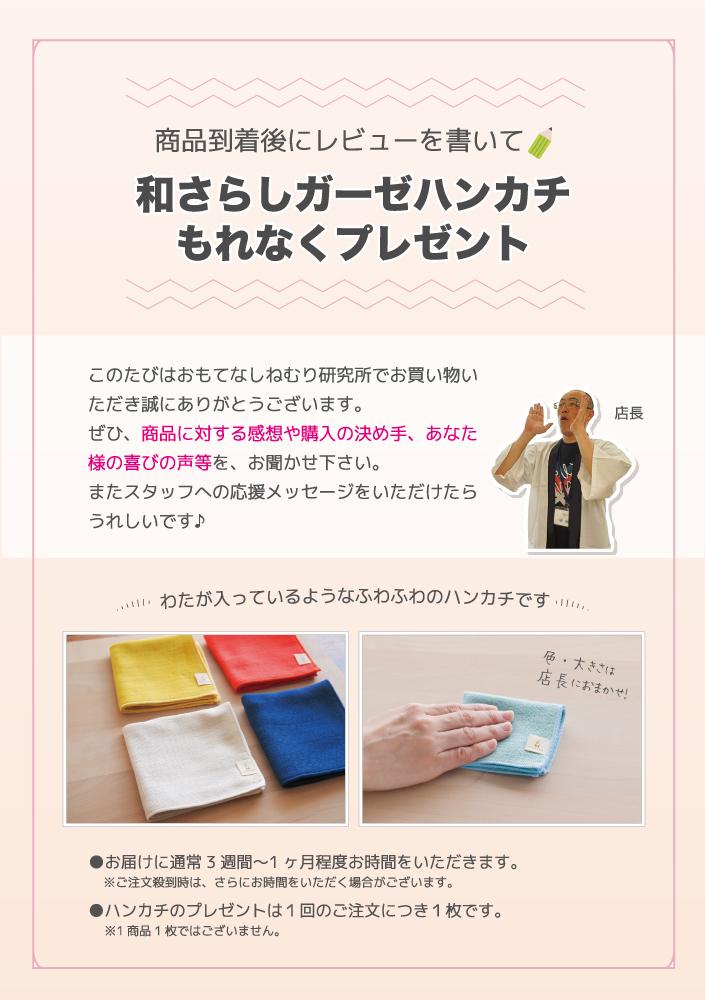 レビューを書いてハンカチプレゼント!