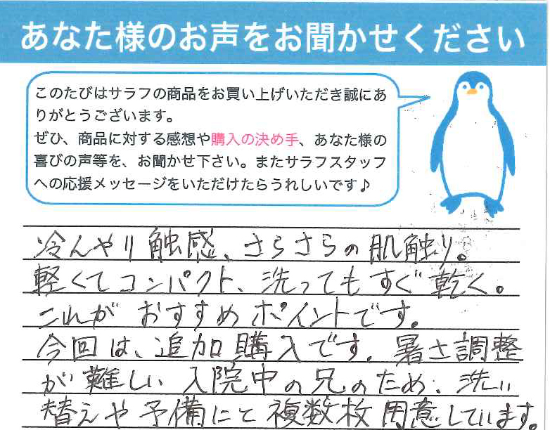 肌ざわり良く入院中の姉も気に入ってるようです
