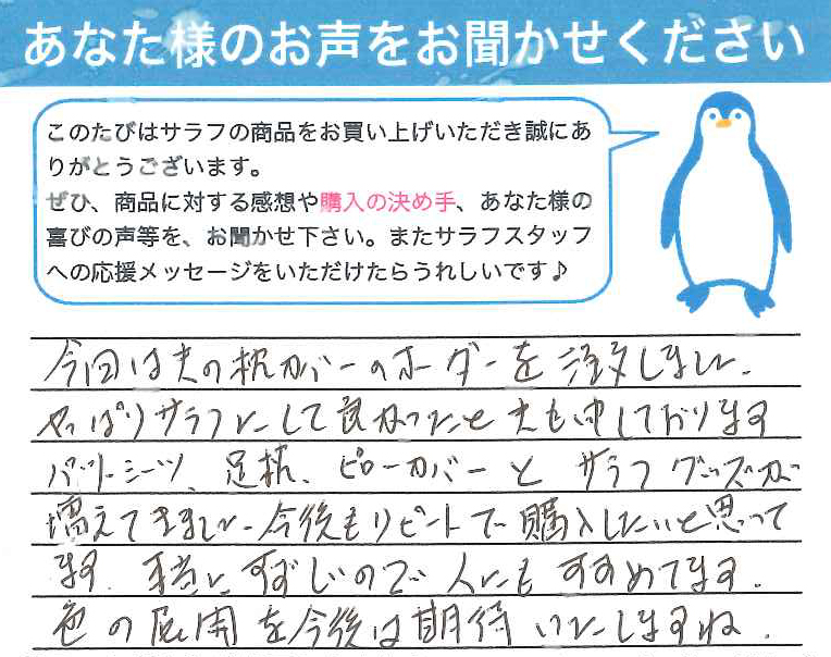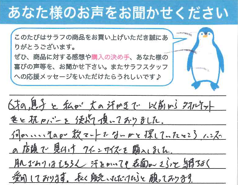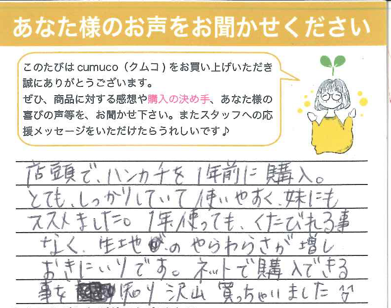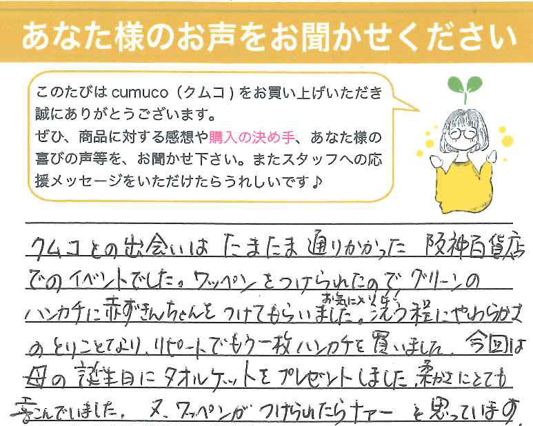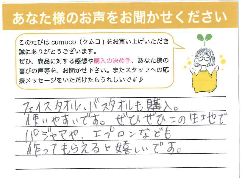 ホームページで「和さらし」に興味を持ち、使ってみたいと思いました