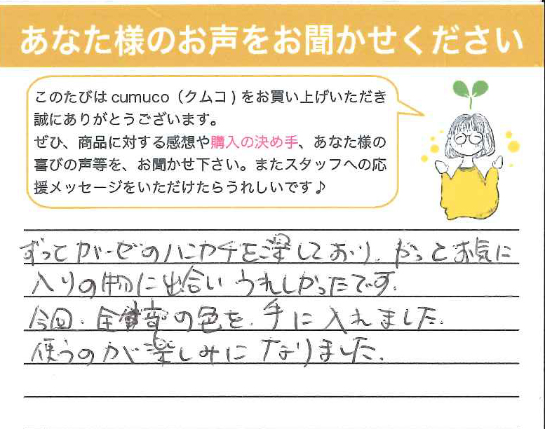 購入時にメッセージも頂きうれしかったです