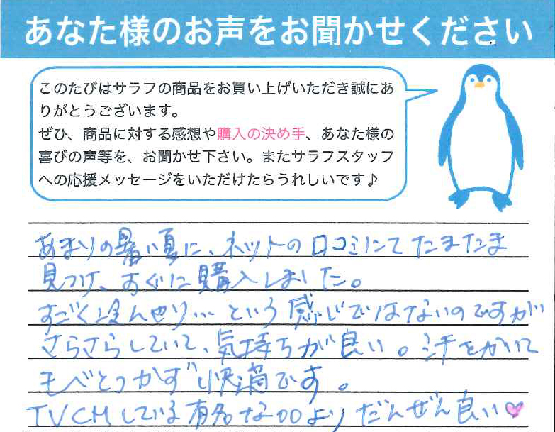 サラッとしていて熱を持たなくて良いと言っております