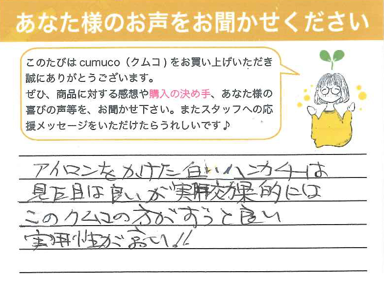普通のタオルだと痛く感じる事がありましたが、クムコを使ってからそれもなくなりました