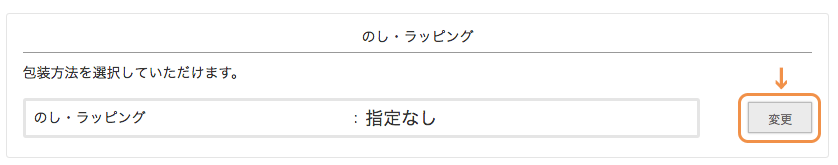 1.ご注文手続き画面にて【のし・ラッピング欄】の変更ボタンをクリックし、【ラッピング+のし】をお選びください。