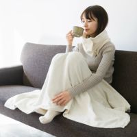 軽くてもちろん自然素材コットンで温かくて、用途機能が多様なものと探していましたら、こちらのお品がヒットしてすぐに購入させて頂きました。色もブルーで視覚でのリラックス感もとても良いです。繰り返し使用する事にボリューム感も出てくるとのことでしたので楽しみです。今シーズンはキッチン作業中に腰巻きとして使っていて冷え予防策万全です。ありがとうございました。 -