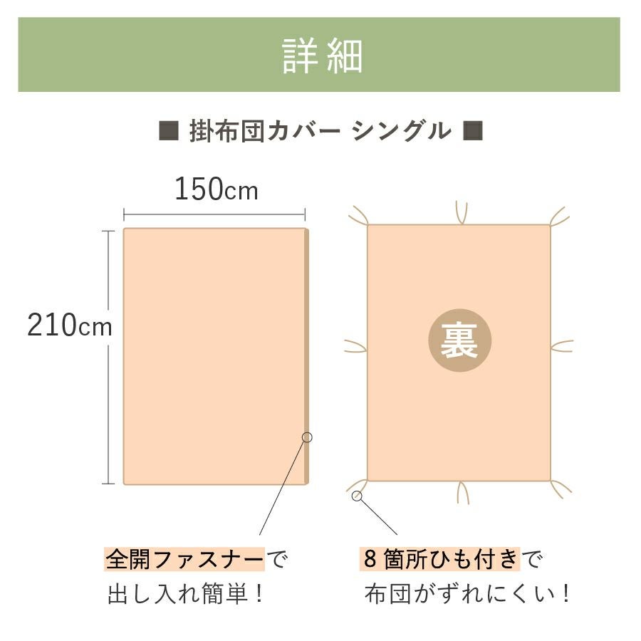 他の画像を見る 質の高いコットンを使用した日本製掛布団カバー。 【20%OFF】こだわりコットン 掛け布団カバー シングルロング 150×210cm 定価 ¥ 6,930 のところ 販売価格 ¥ 5,544 税込 販売期間 2026/03/06 12:00 〜 2026/03/11 23:59 詳細を見る お気に入りに登録する