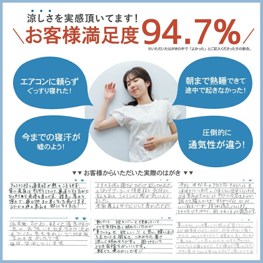 他の画像を見る 吸汗&通気性のドライタイプ。夏の夜を快適にする定番枕パッド! 【ドライタイプ】サラフ ドライピローパッド 50×50cm 販売価格 ¥ 3,850 税込 詳細を見る お気に入りに登録する