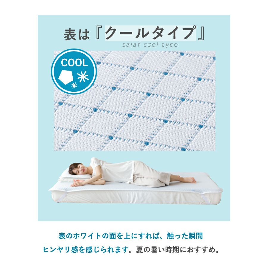 他の画像を見る 冷感&通気性のクールタイプ。夏の夜を快適にする定番敷パッド! 【クールタイプ】サラフ クールパッド シングル 100×205cm 30日間お試し対象商品 販売価格 ¥ 16,500 税込 詳細を見る お気に入りに登録する